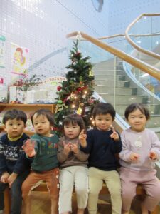 カメラを向けてもツリーから目がはなせないみんなでした(*^-^*)